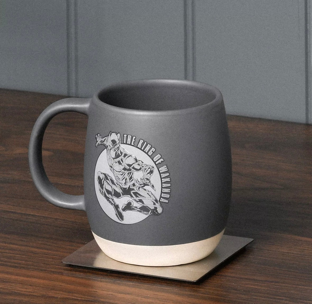 De mok is uitgevoerd in een moderne grijstint en voorzien van een reliëf Avengers-logo, met subtiele invloeden van Black Panther die zorgen voor een unieke en stoere uitstraling. Ideaal voor je dagelijkse koffie, thee of warme chocolademelk.